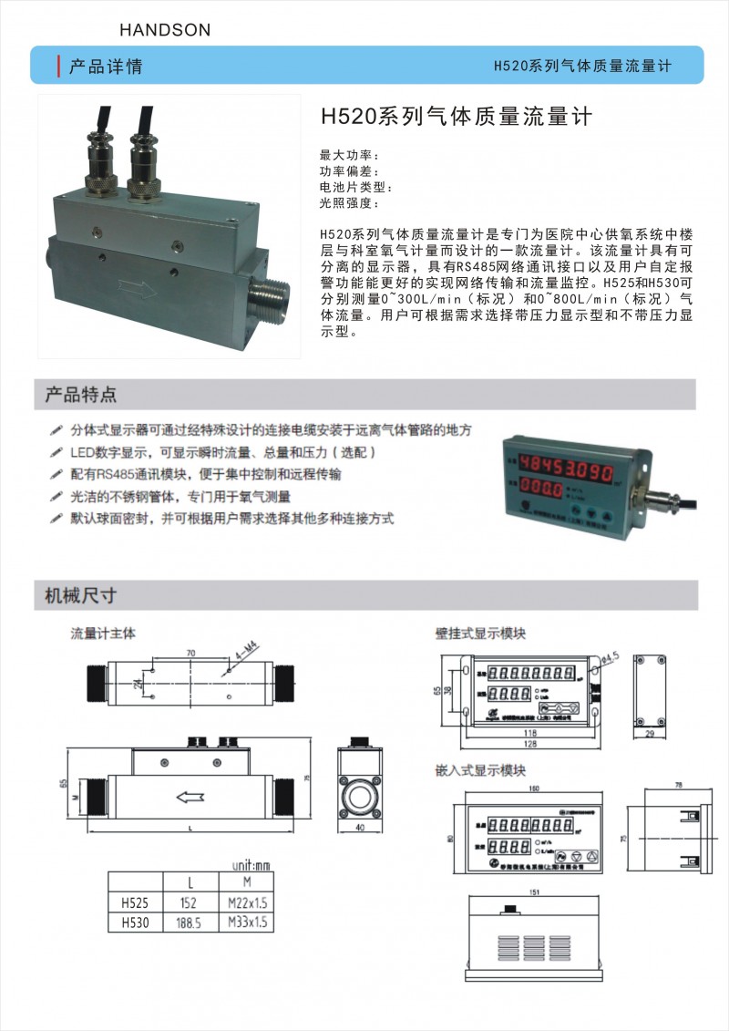 H520/525/530气体质量流量计