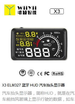 X3 ELM327蓝牙HUD抬头显示器