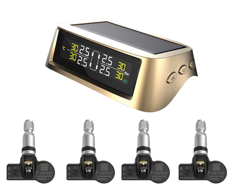3、 气压、温度一屏同显,轮胎异常时,炫目LED自动闪烁,并伴随声音警报