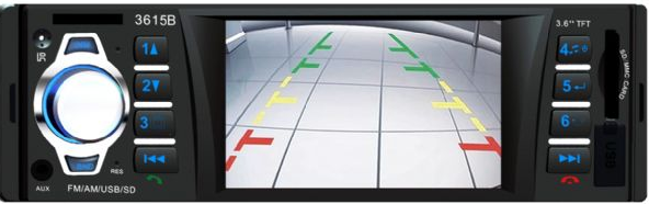 3615B-蓝牙+倒车后视+MP5+APE+MP3+FM收音+七彩灯