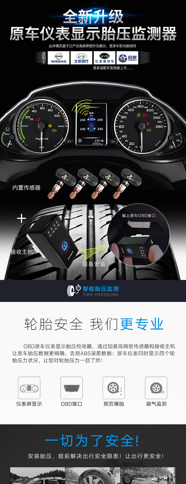 OBD原车屏显示胎压监测内置