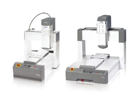 ■ 便利性 - 容易操作的编程器实现正确的坐标输入(选配CCD时) - 点胶位置的自动补正功能(选配Vision时) - 针头高低的自动补正功能(选配:变位传感器时) - Dols,Lines,Arcs,Circles等3次元补间功能 - 采用Ball screw和AC Servo Motor,实现高精密度和高速的点胶作业 - 采用点胶专用治具和控制盒,实现定量,精密点胶作业 ■ 泛用性 - 可录入255program or 30000point的大量内存功能 - 用Dip switch简单地变更程序 ■ 高刚性 - 采用密封型桌面,防止外部的灰尘 - 压铸结构和铸造结构方式的多种型号 ■ 高性能 - 实现正负0.01mm的反复精密度 - AC Servo Motor驱动模式的正确应答性 |