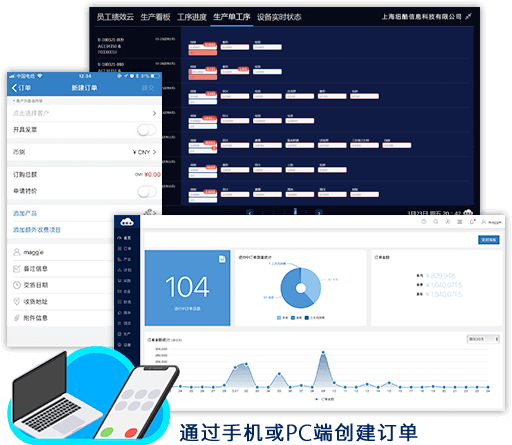 通过手机,客户可直接下订单,订单管理员可随时随地通过手机进行审核订单。更智能的管理订单,多维度统计订单相关各项数据。SaaS云服务实现多终端实时监控订单进度。