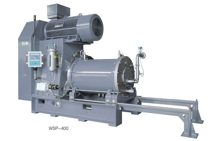 物料随着进料泵由顶端进入研磨腔,随着转子的旋转而均匀分布,在转子和定子缝隙内涡流离心力作用下对物料进行彻底的预 分散处理。在接下来强烈的研磨中,转子和定子对研磨介质连续发生剧烈的撞击变化,研磨介质再作用于物料,物料得以研磨,研磨 后的物料在研磨腔停留特定的研磨时间,从而得到一个极窄的产品粒度分布带,在进料泵压力和离心力作用下,由于密度的不同,研磨介质返回研磨腔,物料却沿着离心力相反的方向经滤网式分离器过滤分离,循环往复。