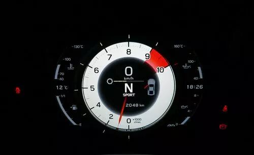 LFA的仪表盘更像一个整体,当引擎启动,仪表盘上的四个数据(汽油检测、水温、油量、油压)会移向仪表盘两边,转速表会出现在中间的位置。转速表会发光和改变颜色,还会根据行使速度和行车模式发生变化。