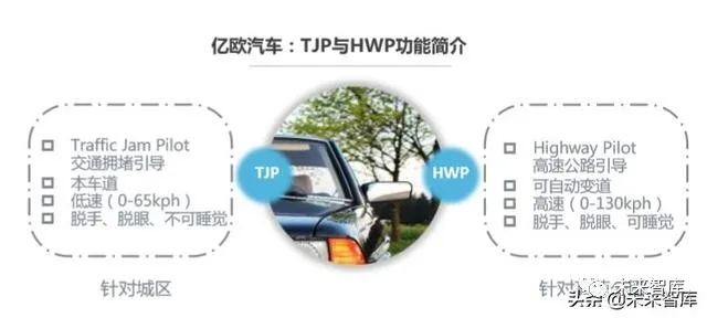 2.3.3 未来三年,车企将重点研发部分L3级自动驾驶技术我们认为,未来三年,车企将重点研发部分L3级自动驾驶技术。l 国家:与大多数国内车企未来三年内实现L3级自动驾驶车辆量产的目标相比,国家层面的预期 则更晚一些,预计2025年实现规模化量产。l 业界:由于尚未实现大规模量产,目前业界对L3 /L4级自动驾驶技术的定义并不十分明晰,消费者 更对其功能状况不甚了解。l 车企:作为量产主导方的车企,拥有某一级的某项特定功能后,甚至就可 以宣称自家技术达到该级标准,以此作为卖点,增强科技感属性。依据技术可量产与用户需求两大指标,TJP(TraFFic Jam Pilot)和HWP ( Highway Pilot)成为两种常见的L3级自动驾驶研发方向,这也将成为国内 车企未来三年的研发重点。l 技术可量产方面而言,与L4级自动驾驶相比,L3级自动驾驶的成本和技术 实现难度都更低。l 用户需求方面而言,目前,上下班通勤拥堵和长途旅行驾驶疲劳覆盖了 80%的人和80%的出行场景,是乘用车用户存在的两大痛点。