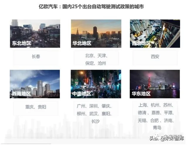 在国家大战略方针指导下,各地方政府也相继出台自动驾驶相关政策跟进。从类 型来看,地方政府政策主要围绕开放公共道路测试路段和建立智能网联示范区两 方面展开。2017年12月,北京市政府率先出台了我国第一部自动驾驶车辆路测规定《北京 市关于加快推进自动驾驶车辆道路测试有关工作的指导意见(试行)》及《北京 市自动驾驶车辆道路测试管理实施细则(试行)》,随后,上海、重庆、长春、 天津、肇庆等城市也陆续出台相关政策。截至2019年底,国内共有25个城市出台自动驾驶测试政策;江苏、广东、湖 南、河南、海南(征求意见)5个省份发布省级自动驾驶测试政策。