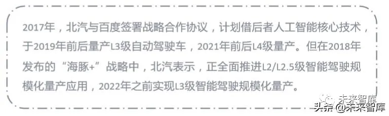 百年以来,车企凭集成和制造经验,始终在汽车产业链中占据主导地位。但来势 汹汹的自动驾驶浪潮似乎正在改变这一格局:零部件企业以图像识别、高精地图等技术为切入点,试图占领“高地”;自动驾驶初创企业虽然体量尚小,但经过四年左右的成长,大多已在技术方面取 得较大进步,实力不容小觑。来自四面八方的威胁使车企惊觉,如果不及时顺应浪潮做出改变,就有沦为自 动驾驶企业“代工厂”的危险。能否在变革中生存下去,是每一家车企都要面临的问题,传统车企必须“求变”。l 另一方面在集团内部组建研发团队,制定自动驾驶战略规划但极度焦虑与对技术发展的乐观预估,使车企初自动驾驶战略规划都较为激进。