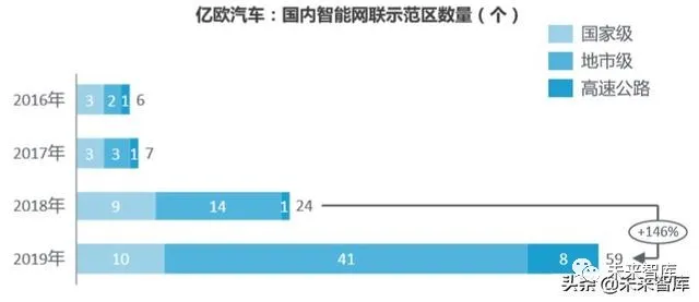上海建成智能网联示范区四年间,各地智能网联示范区数量逐年攀升,并呈现加 速增长状态。从示范区类型来看,近一年里,地市级智能网联示范区数量增速 快。