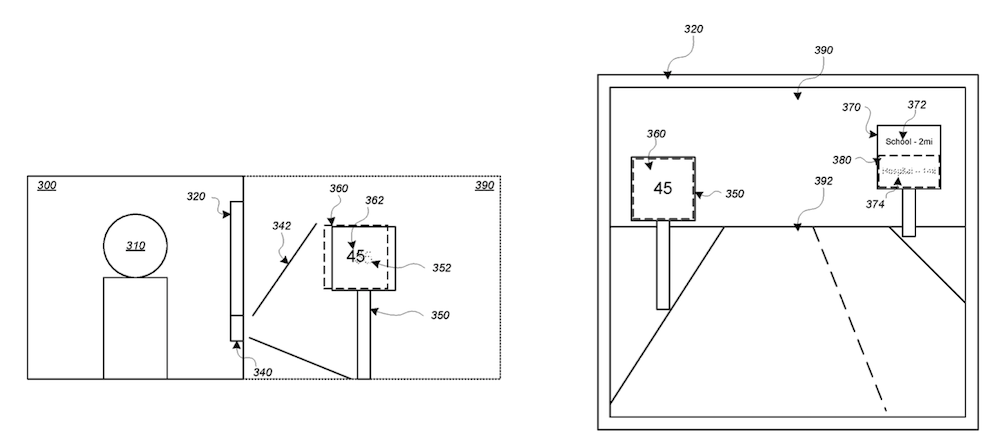 在这方面,苹果的方向是AR-HUD,截止目前,苹果一共获得了四项有关AR-HUD的专利。苹果的AR-HUD除了可以导航之外,还能翻译路牌。