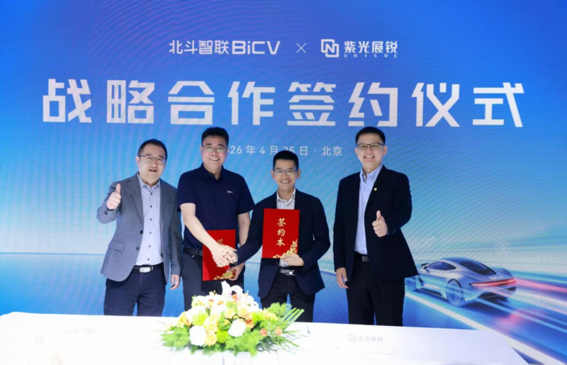 4月25日北京车展期间,北斗智联与紫光展锐正式签署战略合作框架协议。双方将依托新一代智能座舱SoC平台及先进通信技术,在技术研发、市场拓展与生态共建等领域全面合作,共同助力中国汽车智能座舱产业链的自主化进程与高质量发展。